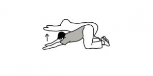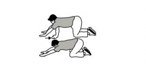 • به حالت چهار دست و پا، در حالی که پشت شما رو به زمین است، باسن  را به سمت جلو و عقب حرکت دهید.