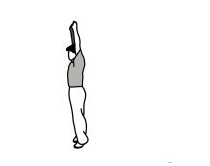 • بایستید و دست ها را بالای سرتان به طرف بالا بکشید. انگشت ها را به هم قلاب کنید و کف دست ها را به طرف بالا بگیرید. در این حالت، دست ها را کمی به طرف عقب بکشید. حالت کشش را حفظ کنید. به حالت نخست بازگردید و حرکت را تکرار کنید.