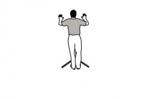 • بدون انکه دست ها از دیوار جدا شوند، آن ها را به بالای سر و پایین حرکت دهید.