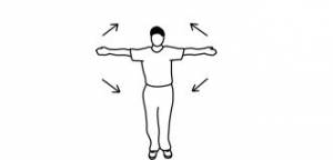 • با یک دست، مچ دست دیگر را بگیرید و آن را به سمت داخل بدن بکشید. حالت کشش را حفظ کنید. سپس به حالت نخست برگردید و حرکت را بادست دیگر تکرار کنید.